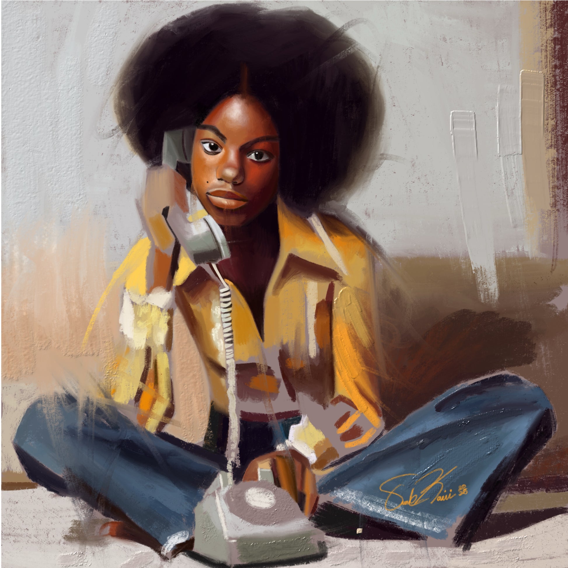 A tender ode to 1970s innocence- Young Love captures a girl lost in dreamy conversation, cradling a rotary phone, basking in the first crush magic, unaware of time, bills, or boundaries.